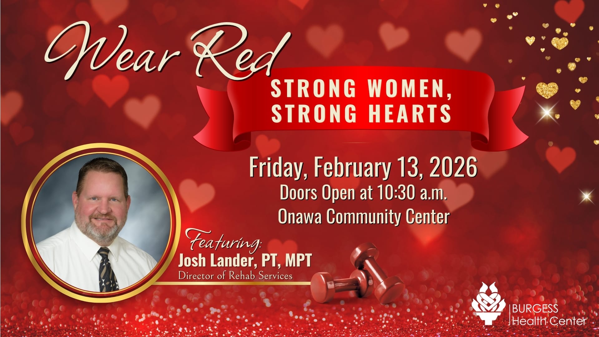 Burgess Health Center invites community members to attend the annual Wear Red event on Friday, February 13, 2026, in support of women’s heart health. This year’s theme, “Strong Women, Strong Hearts,” celebrates the strength, resilience, and everyday choices that help women live heart-healthy lives.