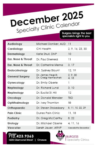 Clinic Calendar December 2025